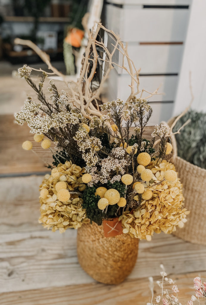 Preservation is another form of drying but the main difference is the use of more refined techniques; likened to the process of curing meat, when a floral is in its peak state, preservation is achieved by placing it in a non-toxic mixture similar to that of sugar-water. Once saturated, the floral (or branch) is dipped again after it has completely dried out. This process is repeated over and over and after about three months (yes three months!), the floral is “preserved,” or cured if you will, in a form closest to its natural state.