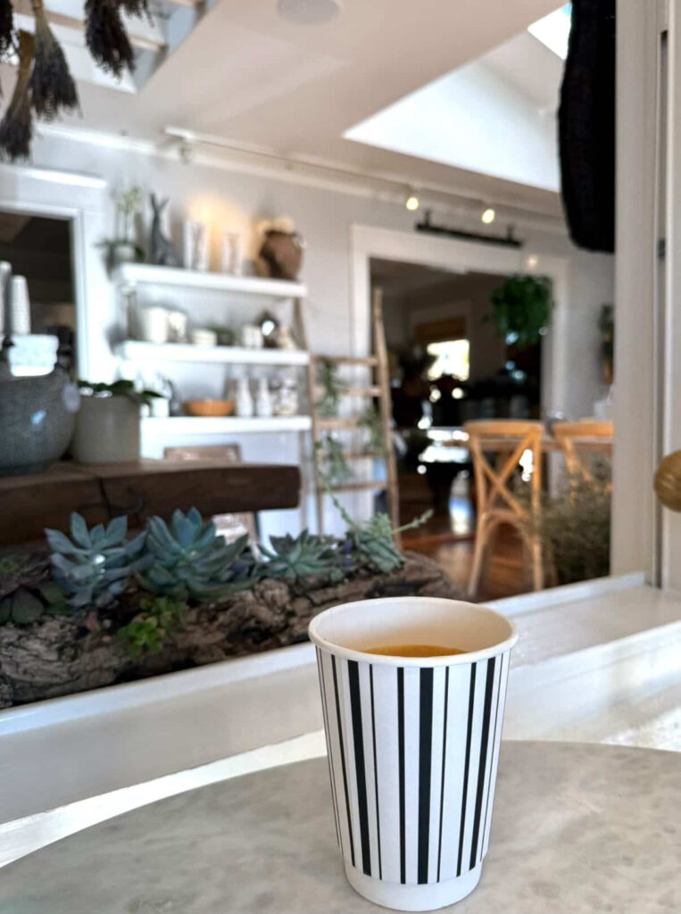 Tucked inside a charming historic cottage, our café is a refined “sip & shop” experience where French antiques, curated home décor, and thoughtfully crafted coffee come together.