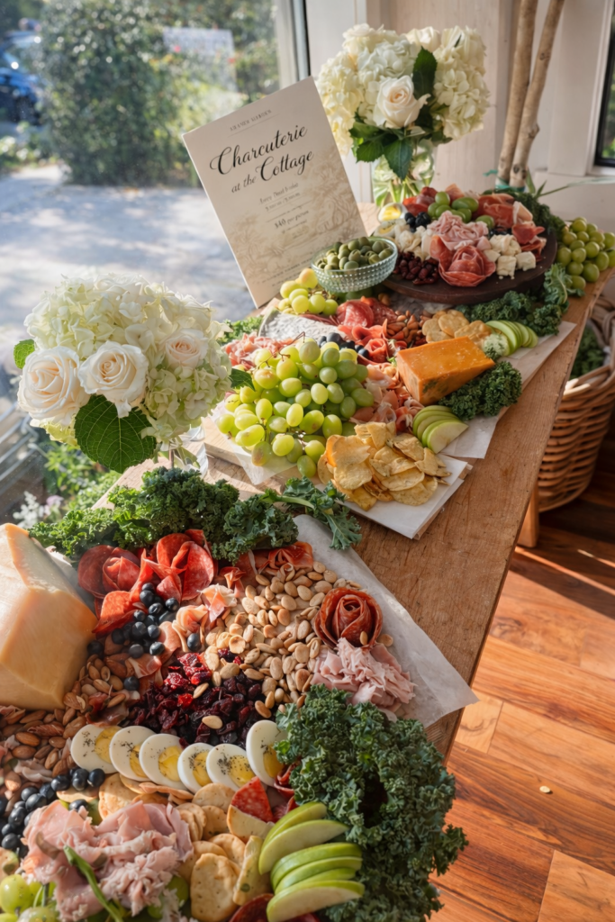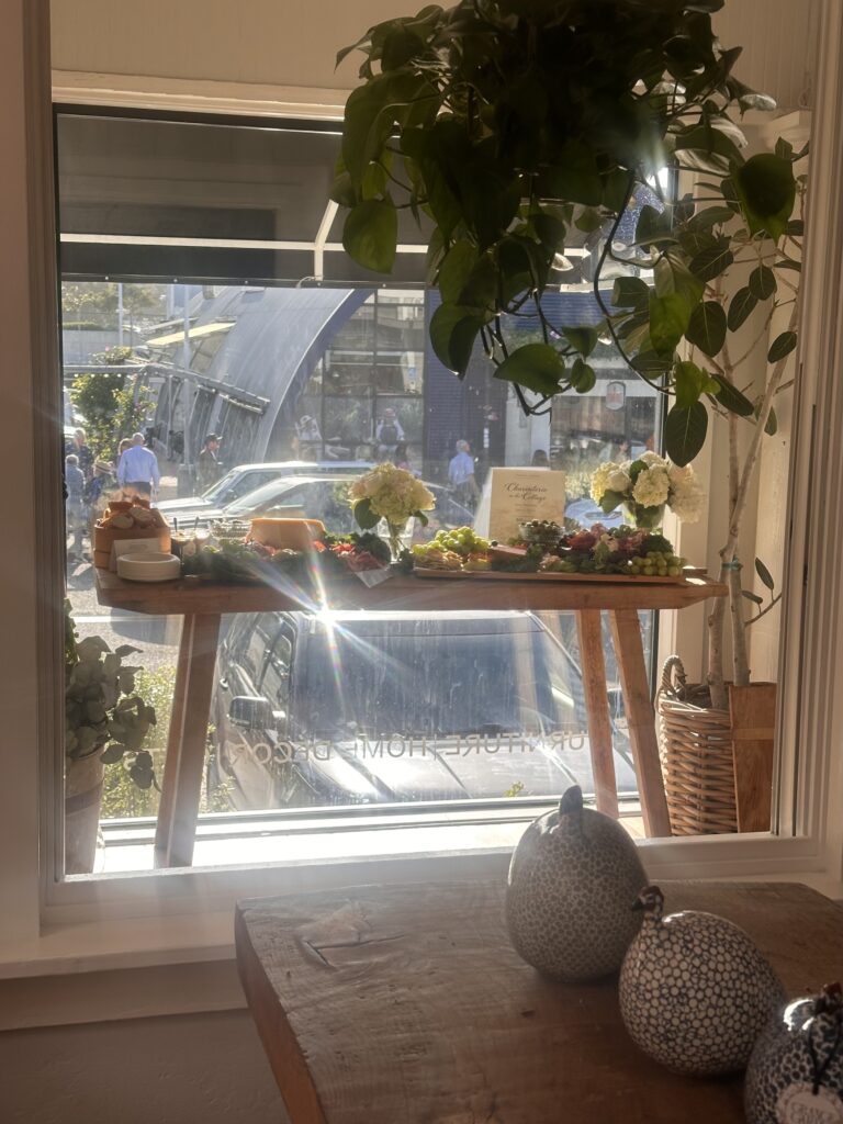 Soft, sunlit interiors and layered textures create an intimate, European garden atmosphere, where rustic wood, soft botanicals, and thoughtful details set the tone for slow mornings, quiet conversations, and beautifully styled gatherings. It’s here that we host our Third Friday Charcuterie Evenings—an elegant, communal experience centered around artfully arranged boards, seasonal ingredients, and relaxed, design-forward gatherings in the heart of Grange Garden.